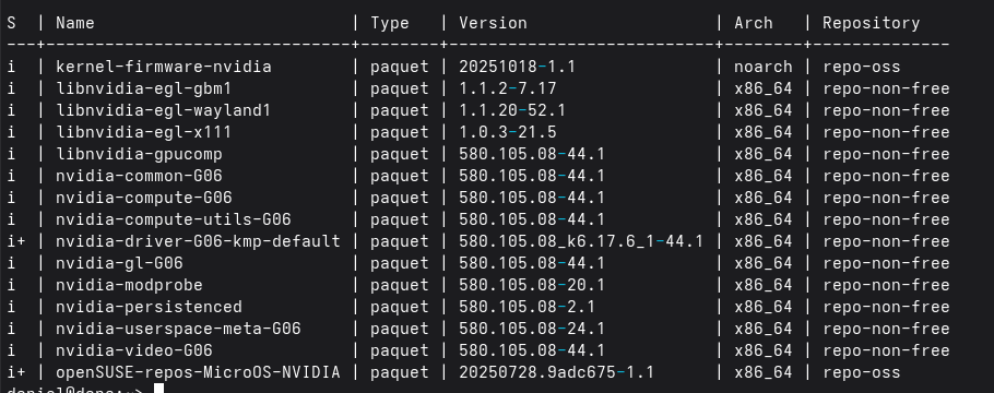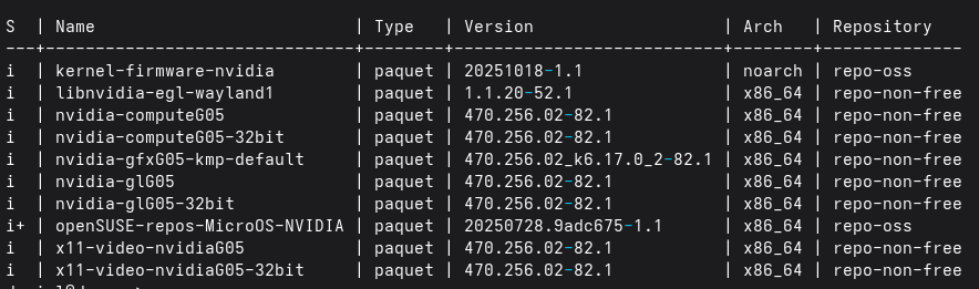 zypper in -f nvidia-driver-G06-kmp-default # reboot; Enroll MOK