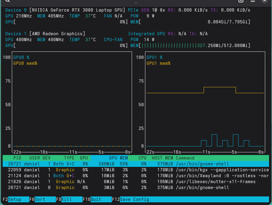 | 0 N/A N/A 3453 G /usr/bin/gnome-shell 3MiB |