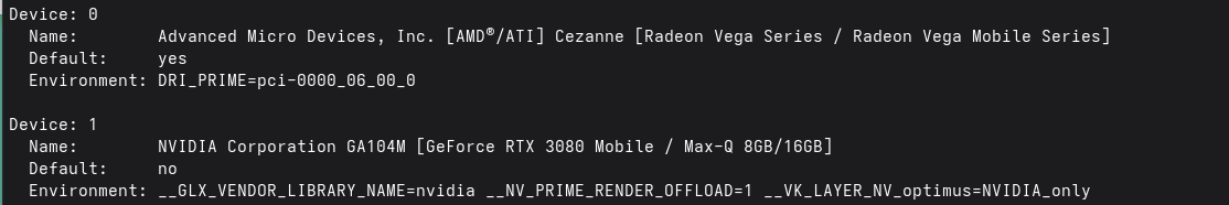 Environment: __GLX_VENDOR_LIBRARY_NAME=nvidia __NV_PRIME_RENDER_OFFLOAD=1 __VK_LAYER_NV_optimus=NVIDIA_only