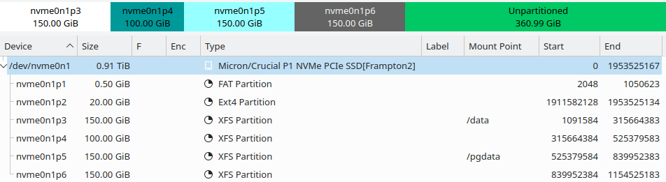 ├─nvme0n1p5 259:16 0 150G 0 part /pgdata xfs crucial_pgsql