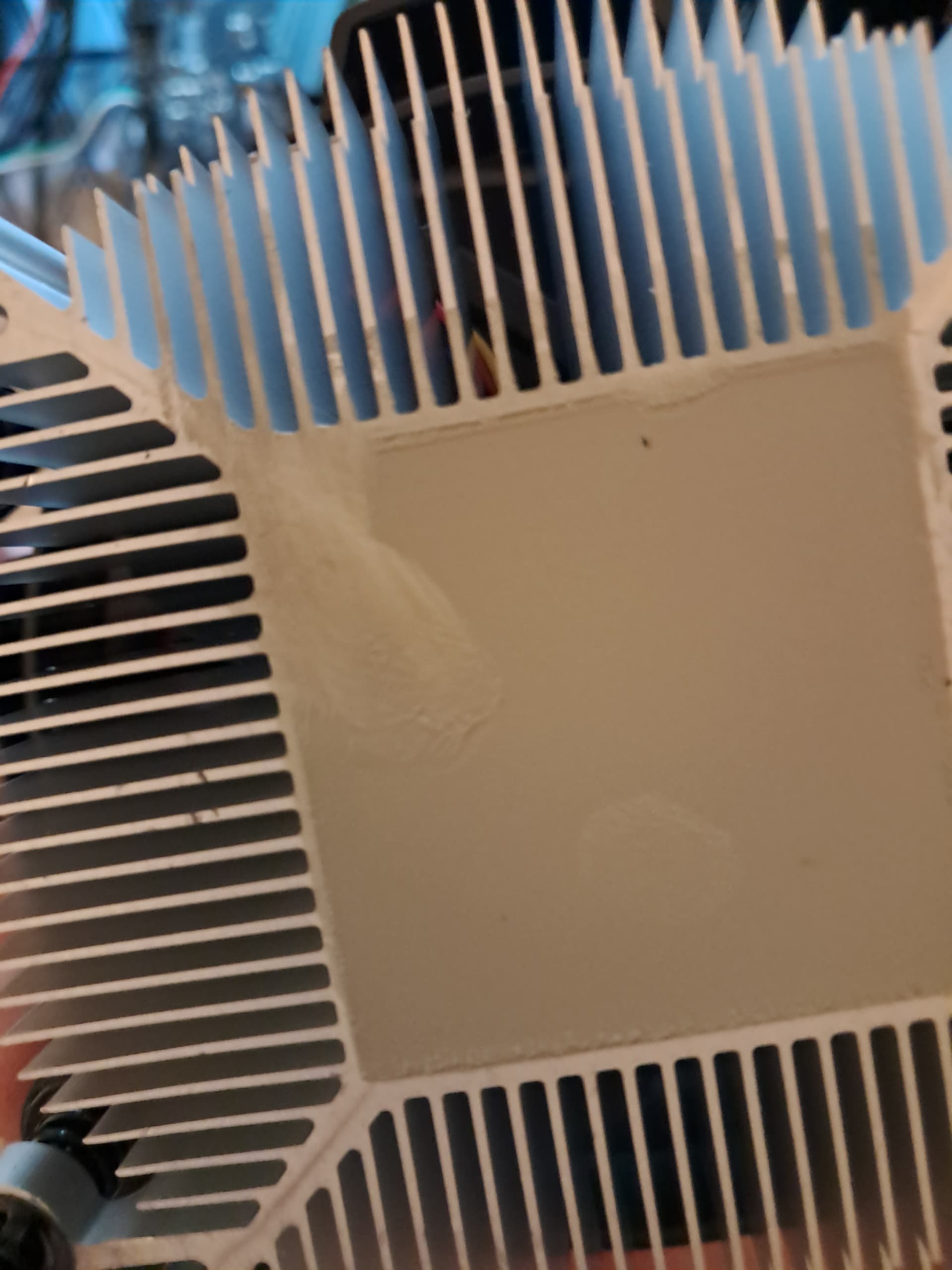 When I picked up the Wraith fan I turned it over and . . . “Hmmm . . . looks like some kind of veneer has been installed that perhaps needs to be removed??? O, no . . . that is the thermal paste already applied, but now has been smeared on one corner. O, I did it again . . . .”
