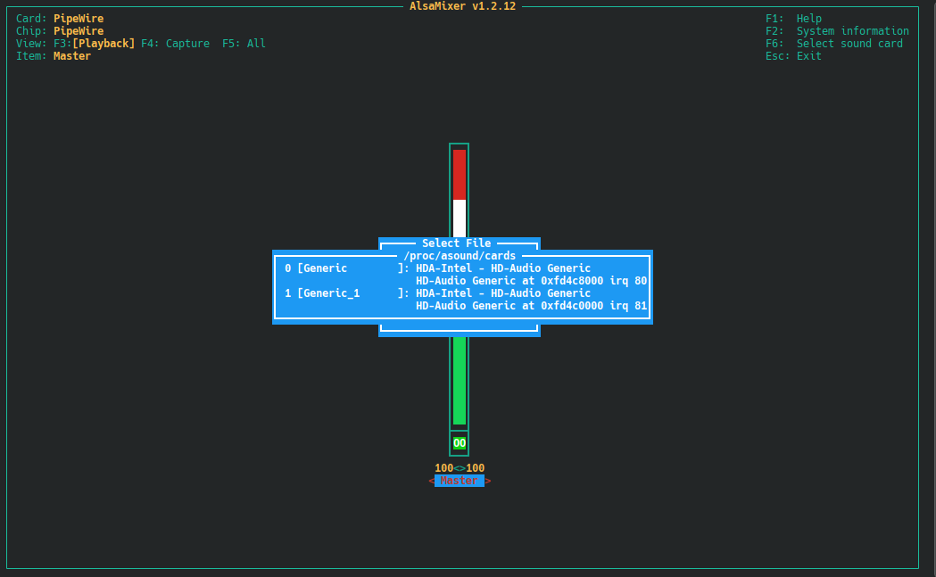 No, in the first screen, “Sound Card”, scroll down and choose “default:1”