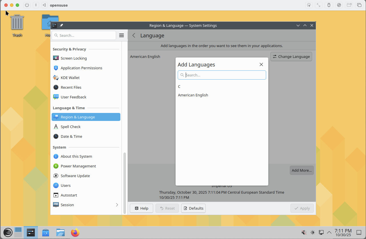 OK, but other distros (ekhm, I tried Fedora as there was KDE Nate’s blog about KDE Linux and he mentioned it so I decided to give it a try) and in that case, while I have to relogin to change the language, I had all locales after the installation available in system settings and then locale selected during the installation was applied…