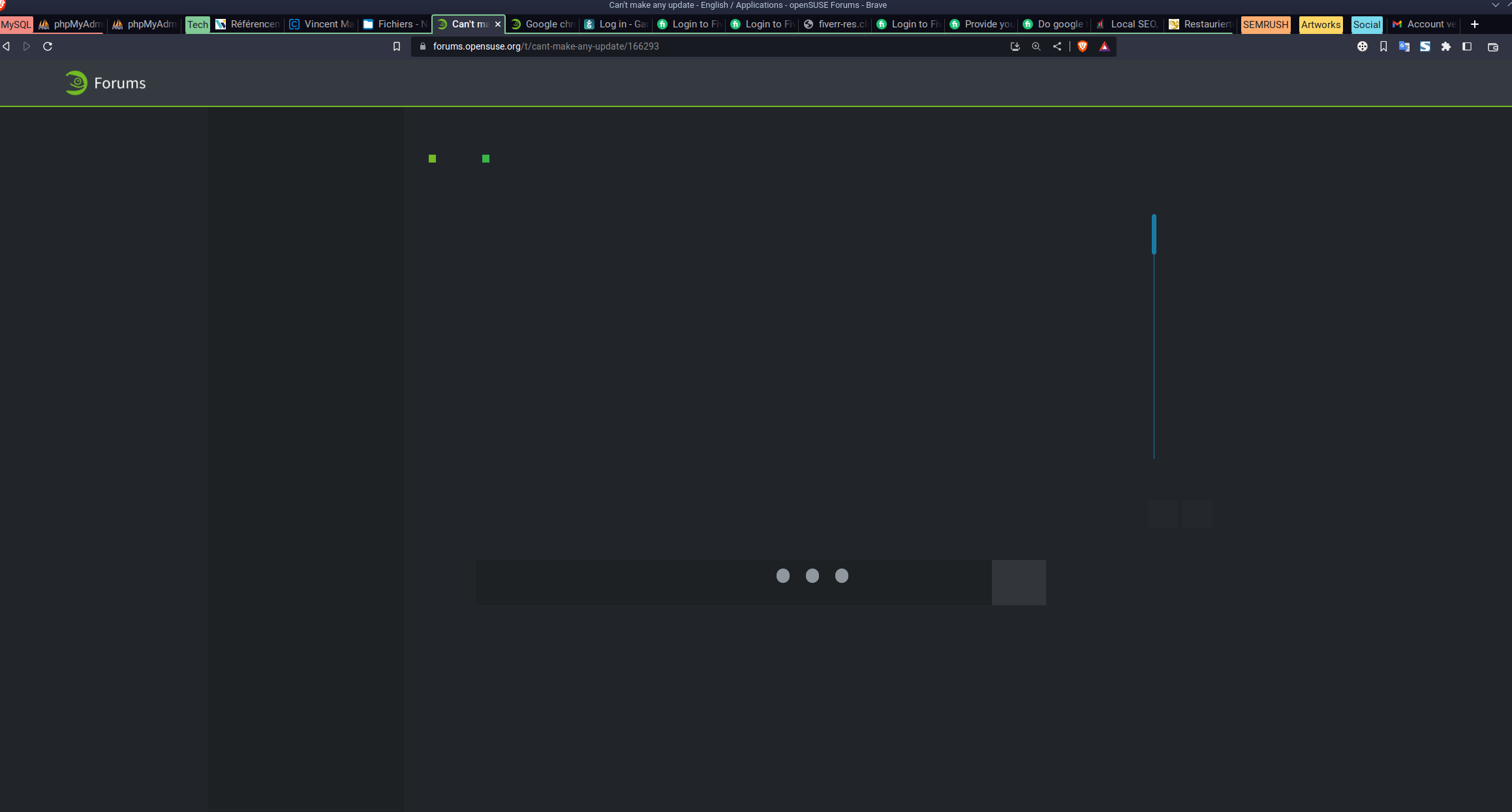 I had serious issues with Brave 1.51.x and had to roll back to 1.50.x and disable Brave updates for a couple of weeks. I can’t say if our issues are related. As a test, you can find the individual main packages in YAST and right-click on them. Select PROTECTED – Do Not Modify. This will prevent them from being updated. I know I won’t see the next working version of Brave for another week or so.