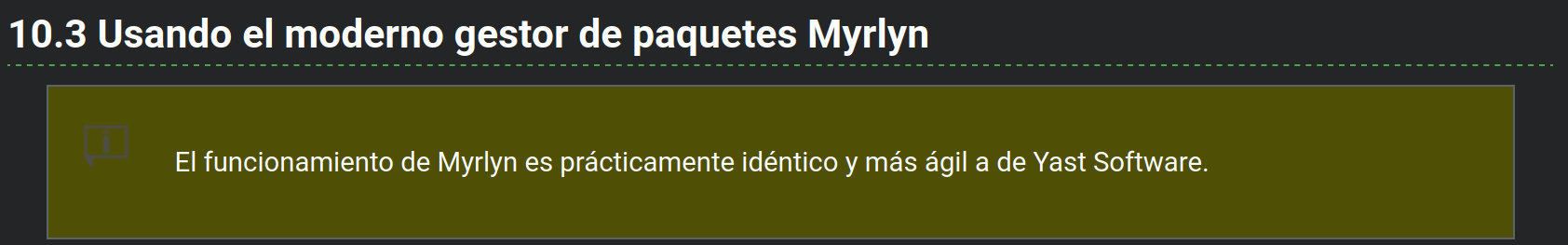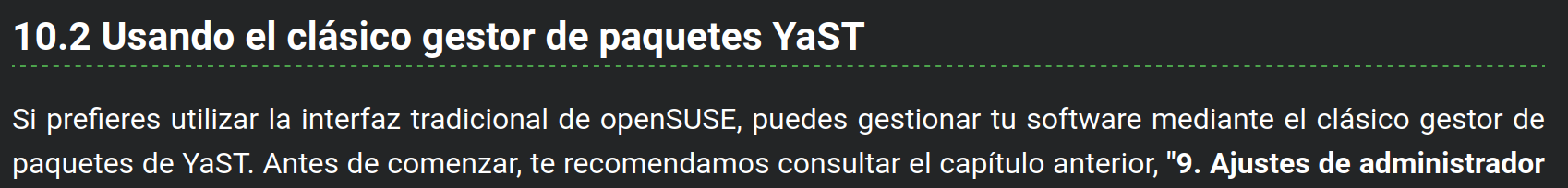 En la página “9. Ajustes de administrador (YaST)” he puesto una nota aclaratoria sobre Yast. Y por eso, no voy a poner la misma nota en la página 10. Instalación de software sobre Yast.