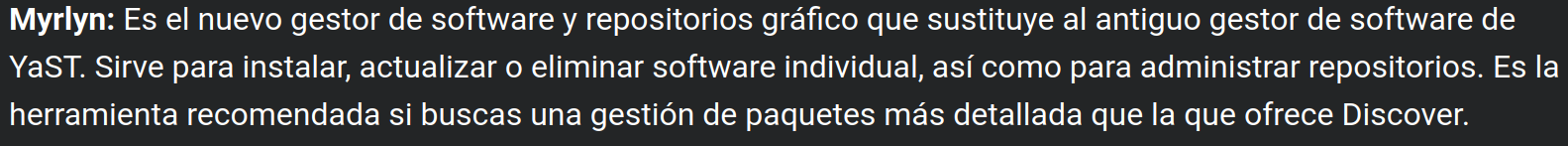 Myrlyn: Sustitución funcional del antiguo gestor de software de YaST (yast2-sw_single).