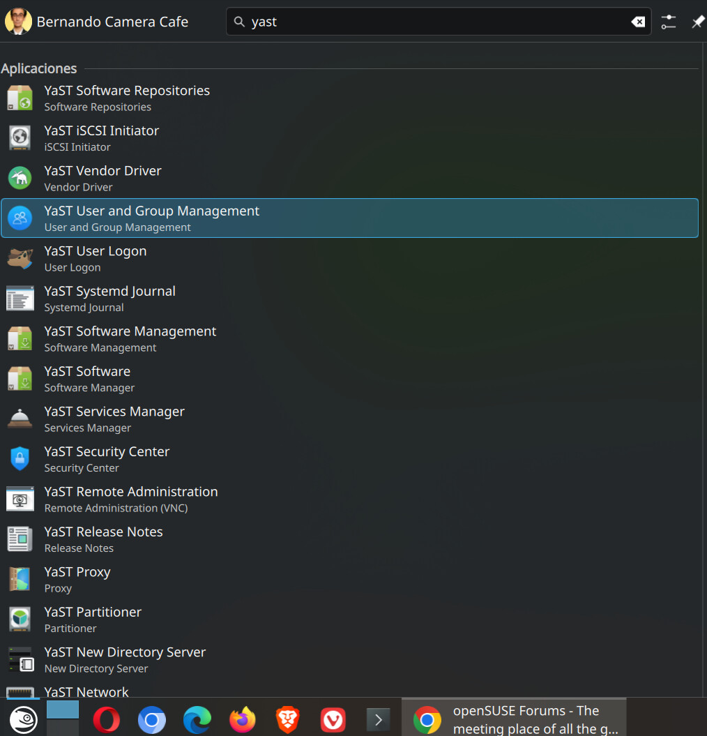 Eso es justamente lo que te estoy intentando decir. Si tú instalas Leap 16.0 (que no instala lo mismo que si actualizas) e instalas yast, por ejemplo con el comando que indicas (ya puestos, ¿no es mejor instalar con Myrlyn?), yast2 users solo funciona en el terminal. No hay aplicación gráfica (lo que no va es QT/GTK). O al menos esto ha sido así en todas y cada una de las pruebas que he hecho. Lo que es peor, tampoco da error, simplemente no hace nada