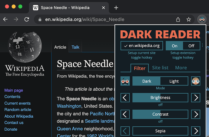 Using Dark Reader on a website