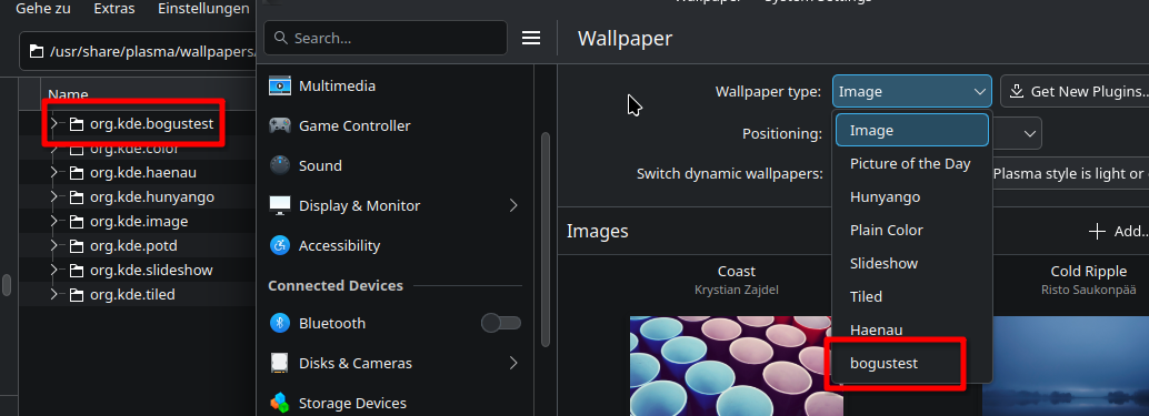 To show you how it works, i created a wallpaper style (copied from the Tiled style and adapted content) and named it bogustest. It shows automatically up in systemsettings: