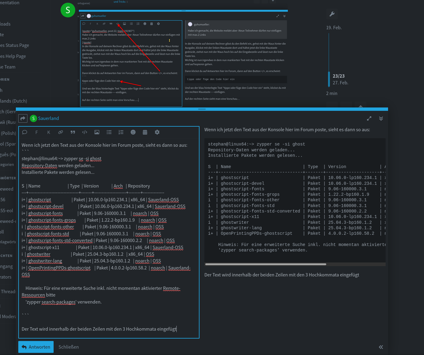 Hier ein Bild, wie es im Editor des Forums dann ausschaut: