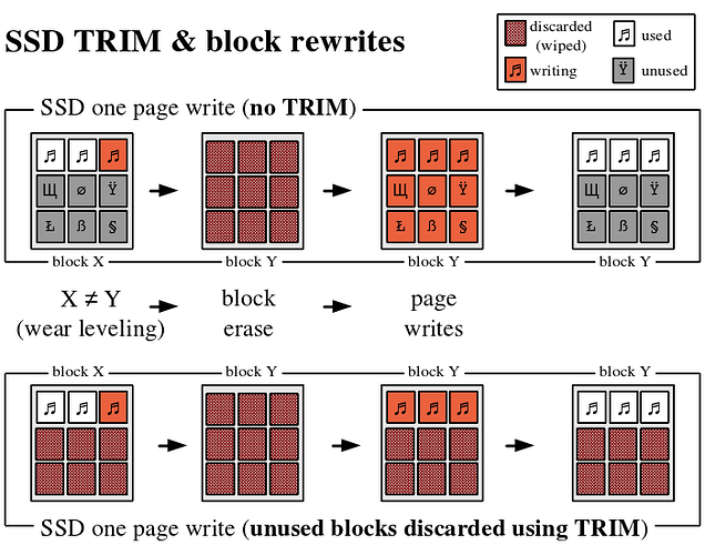 The problem is, the basic situation with SSDs didn’t change and can not change, because an SSD just can not “know” which parts of the storage aren’t allocated and can be re-used, and which parts of the storage contain data which should not be deleted.