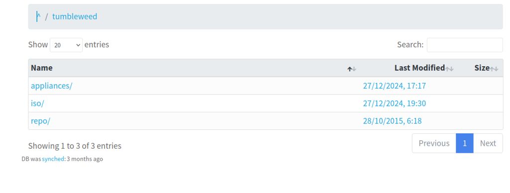 Su situación normal en el servidor suele ser esta : /download.opensuse.org/tumbleweed/ (elimine el principio para que no salga el enlace , lo de htt…etc ) .