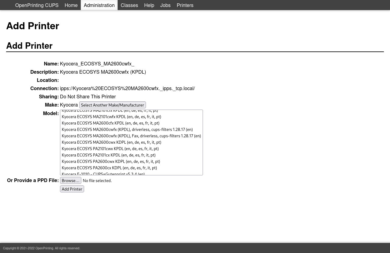 Now I’m trying to properly integrate the printer into CUPS.