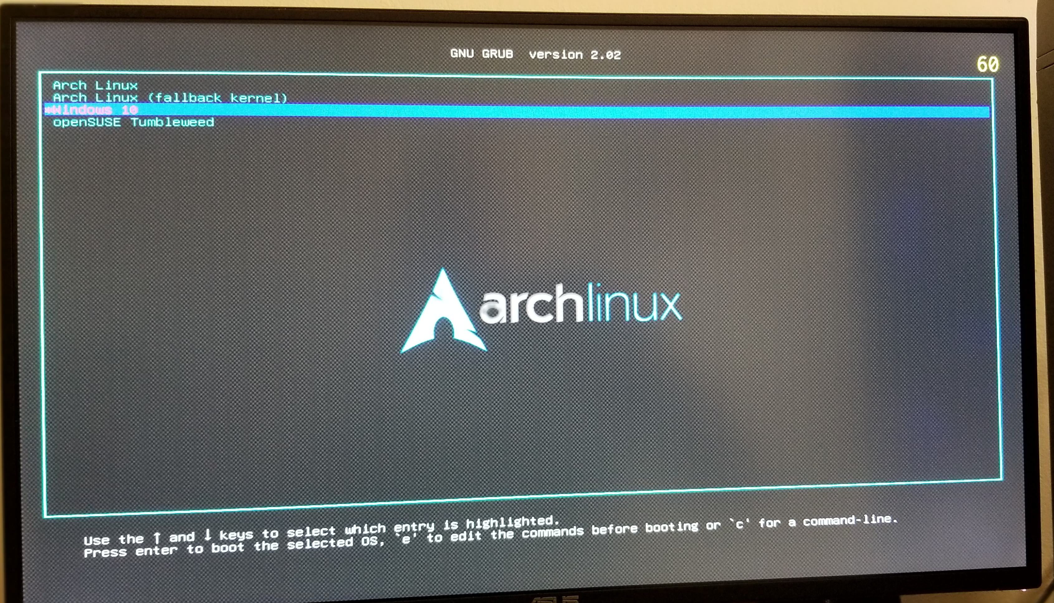 echo 1>&2 "Adding Arch Linux, Windows 10 and openSUSE Tumbleweed"