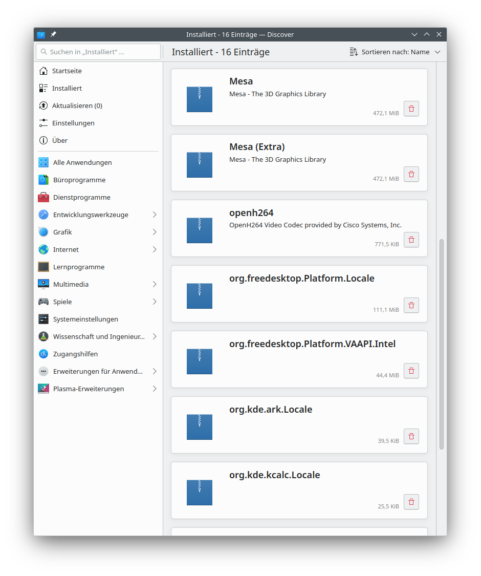 Außerdem hab ich mich dagegen entschieden alle -lang Pakete zu installieren, da mir aufgefallen ist dass dadurch viel unnötiger “bloat” installiert wird, so wie z.B. das Adwaita Icon Theme.