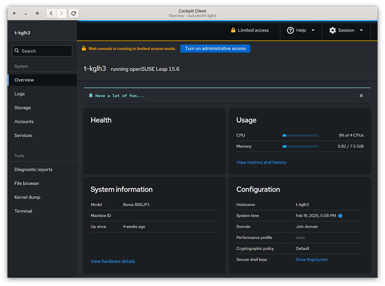 So here is my ADS-B system it’s running Leap 15.5, nothing cockpit related installed…