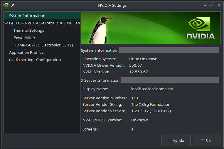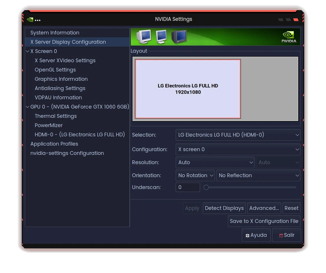 Desconozco la configuración de nvidea-settimgs , ya que uso los drivers de nouveau .