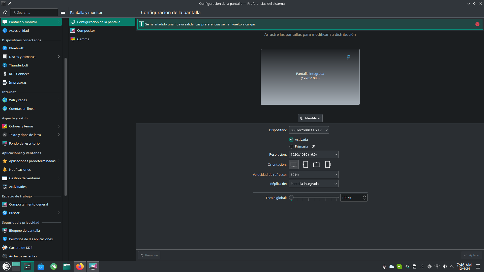Tienes que marcar también , lo de guardar las preferencias… para cualquier combinación de pantalla.