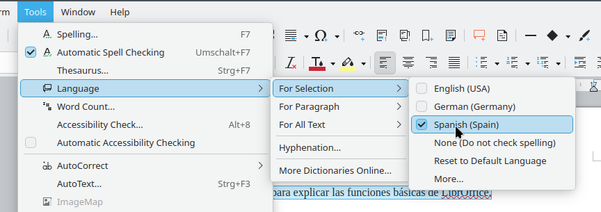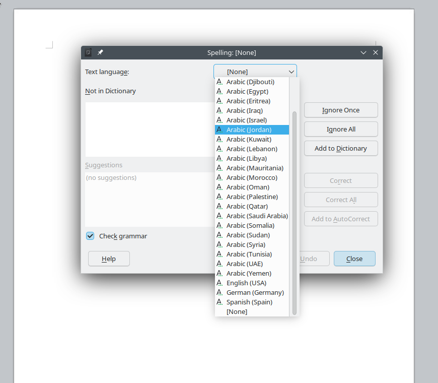 Other programs, such as Firefox, Kmail, etc… they all recognise that they can help out with other languages (the one’s I have installed), but somehow LibreOffice doesn’t.