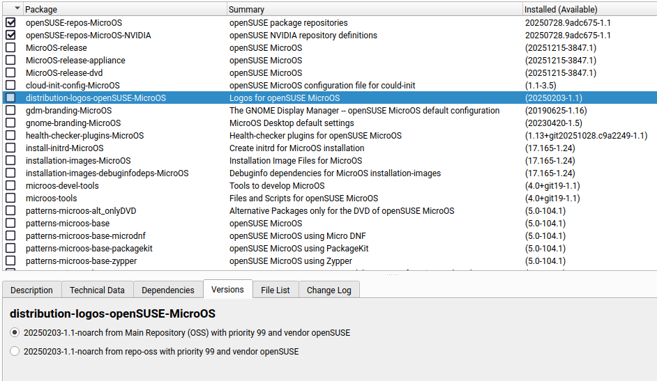 But I am wondering about the Package name and the Summary correlation of the first two packages - the name indicates MicroOs while the summary indicates plain openSUSE while all other packages show MicroOs in both name and summary…
