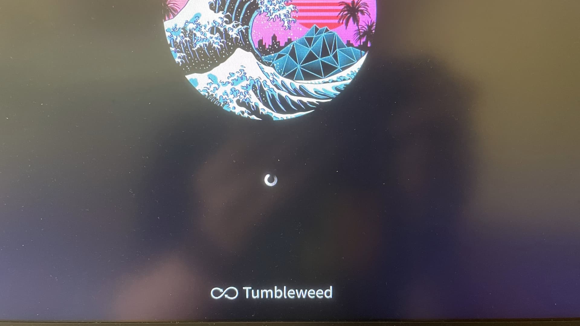 Boot into openSUSE Tumbleweed. System is stuck at the splash screen: