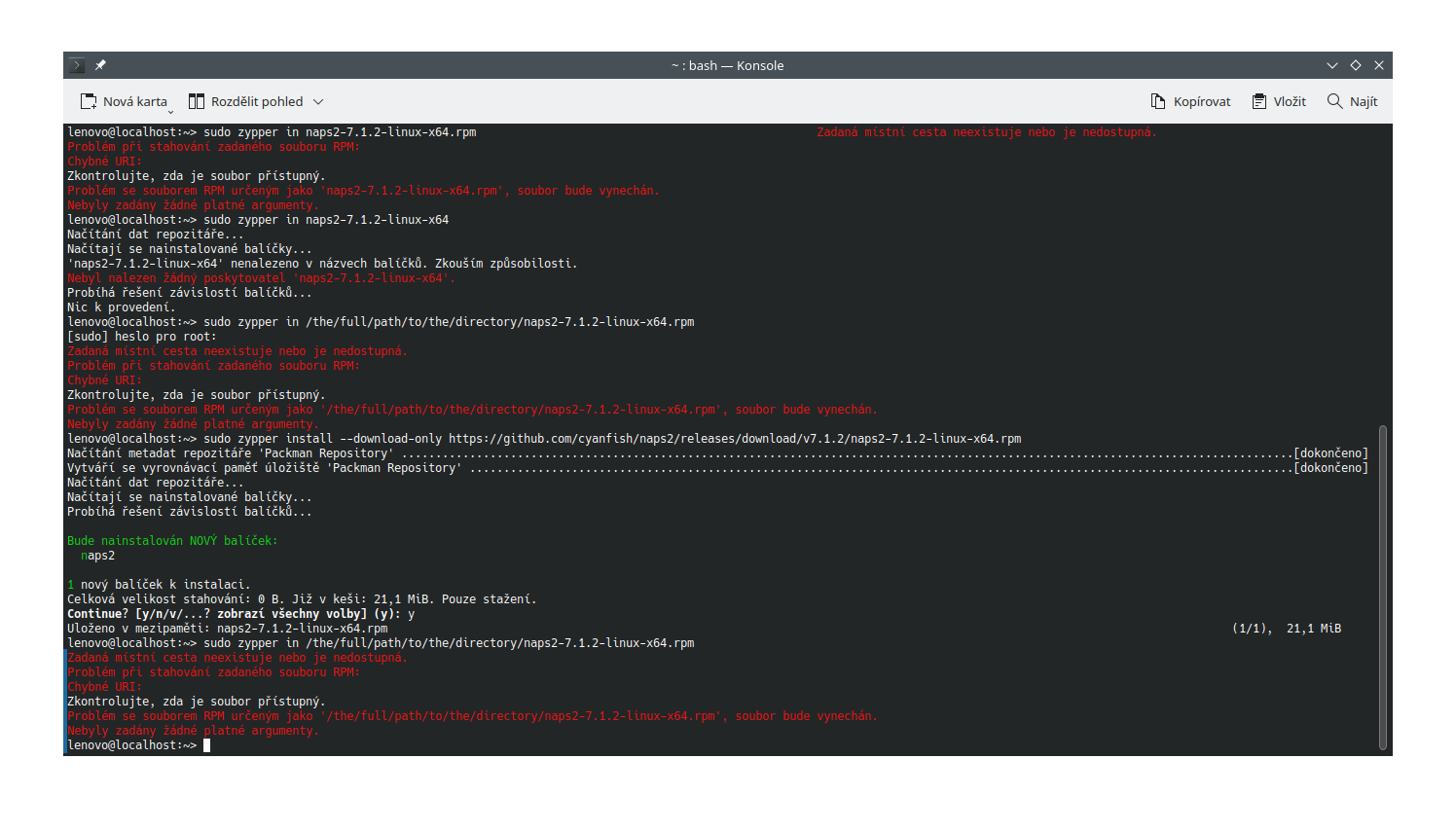 lenovo@localhost:~> sudo zypper in /var/cache/zypper/RPMS/naps2-7.1.2-linux-x64.rpm