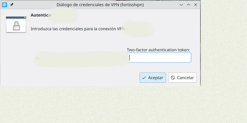 Normalmente uso openfortivpn + el archivo de configuración para conectar vía consola, pero sigo sin solucionar el poder usar la vpn e internet al mismo tiempo, así que ahora que he actualizado la máquina de prueba a plasma 6, lo he intentado con NetworkManager-fortisslvpn configurando el acceso, pero me he tropezado con otro bug que tampoco he podido solventar. Incluso he tenido que grabar la pantalla e ir fotograma a fotograma para ver que pasaba con el programa en cuestión.
