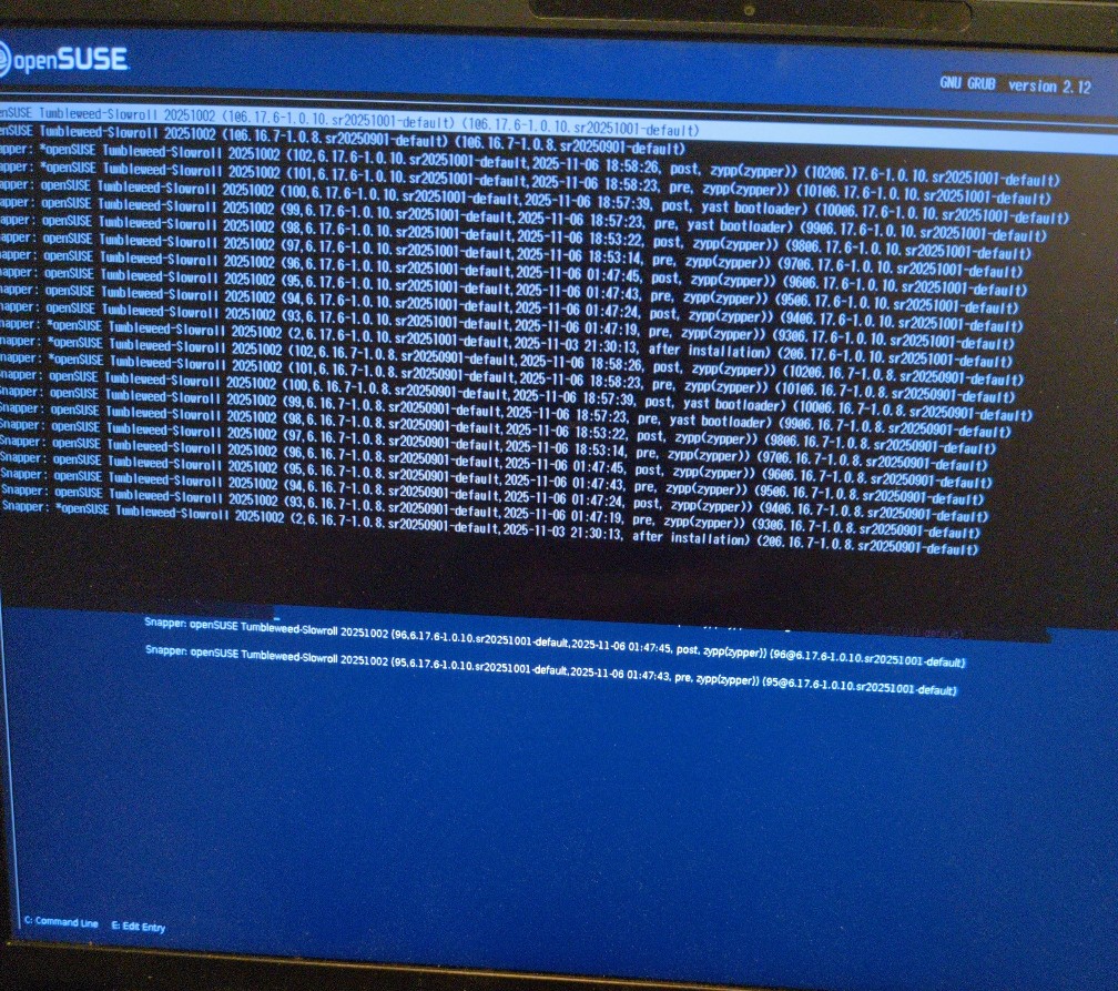 It’s a new grub variant that appeared after I installed grub2-efi and shows up as “openSUSE Boot Manager” in the boot device list I get when I press F12, as opposed to “openSUSE Boot Manager (grub2-bls)” nvm I might’ve misremembered that, gonna try it more now