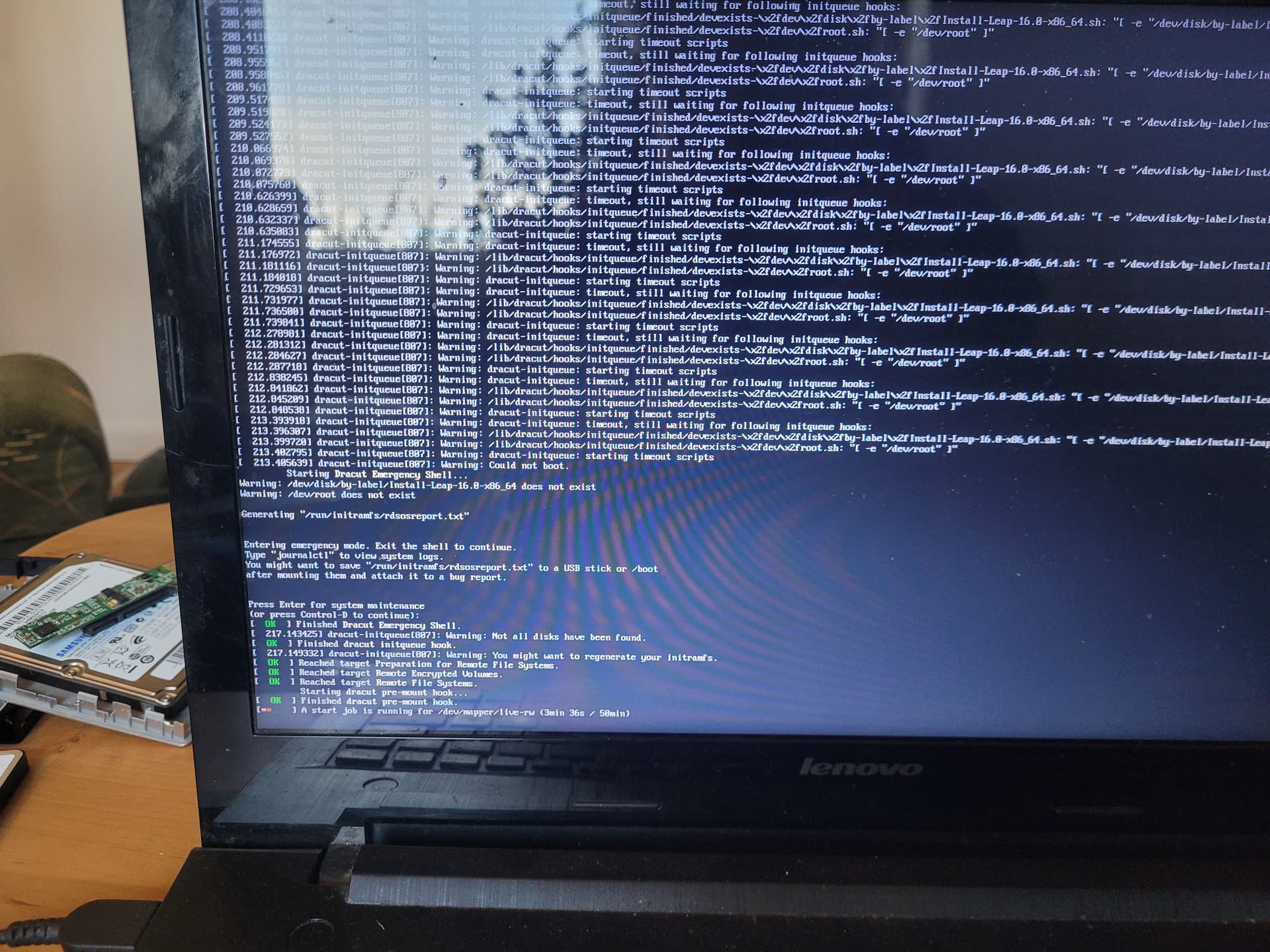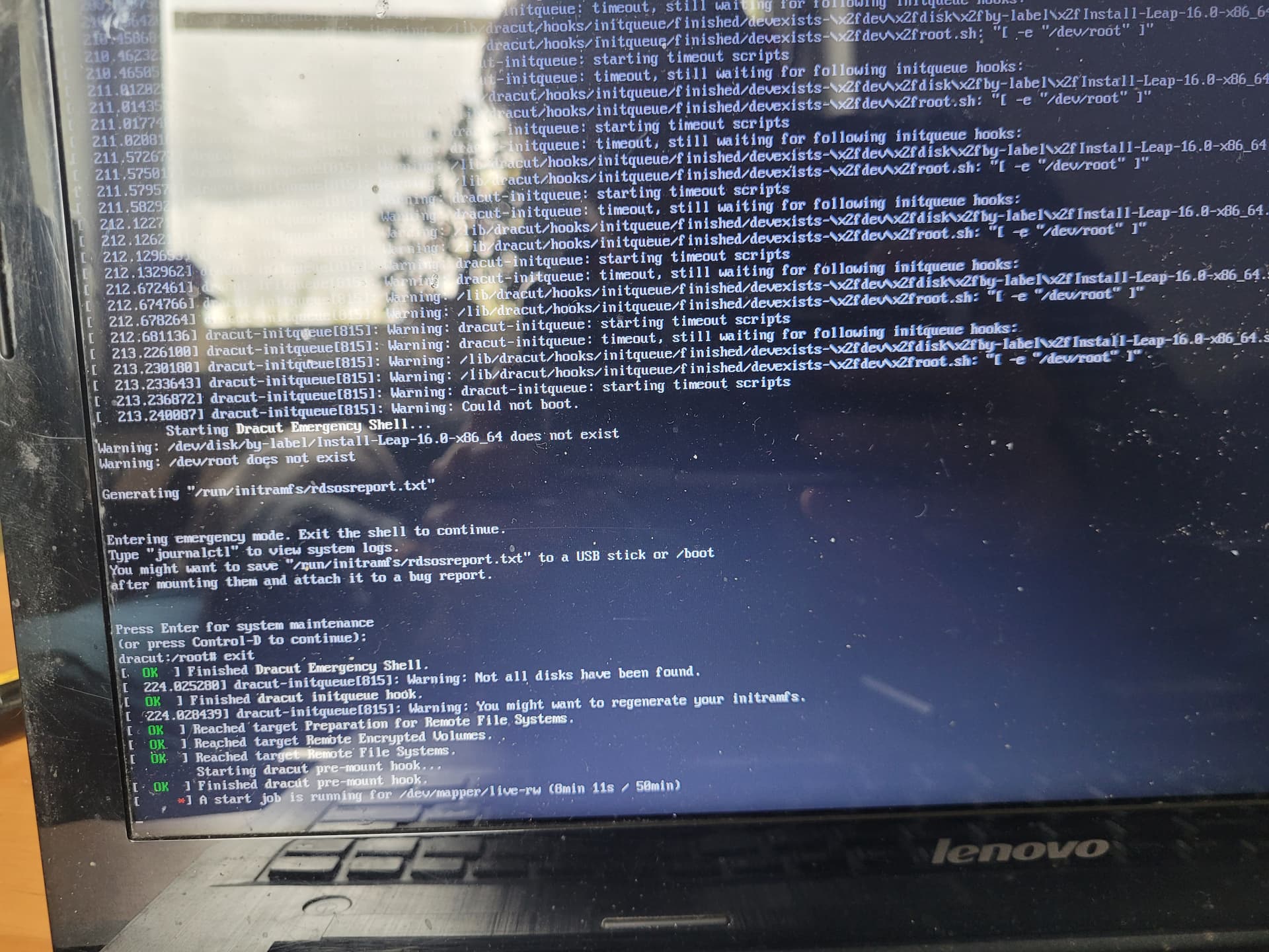 Warning: /dev/disk/by-label/Install-Leap-16.0-x86_64 does not exist