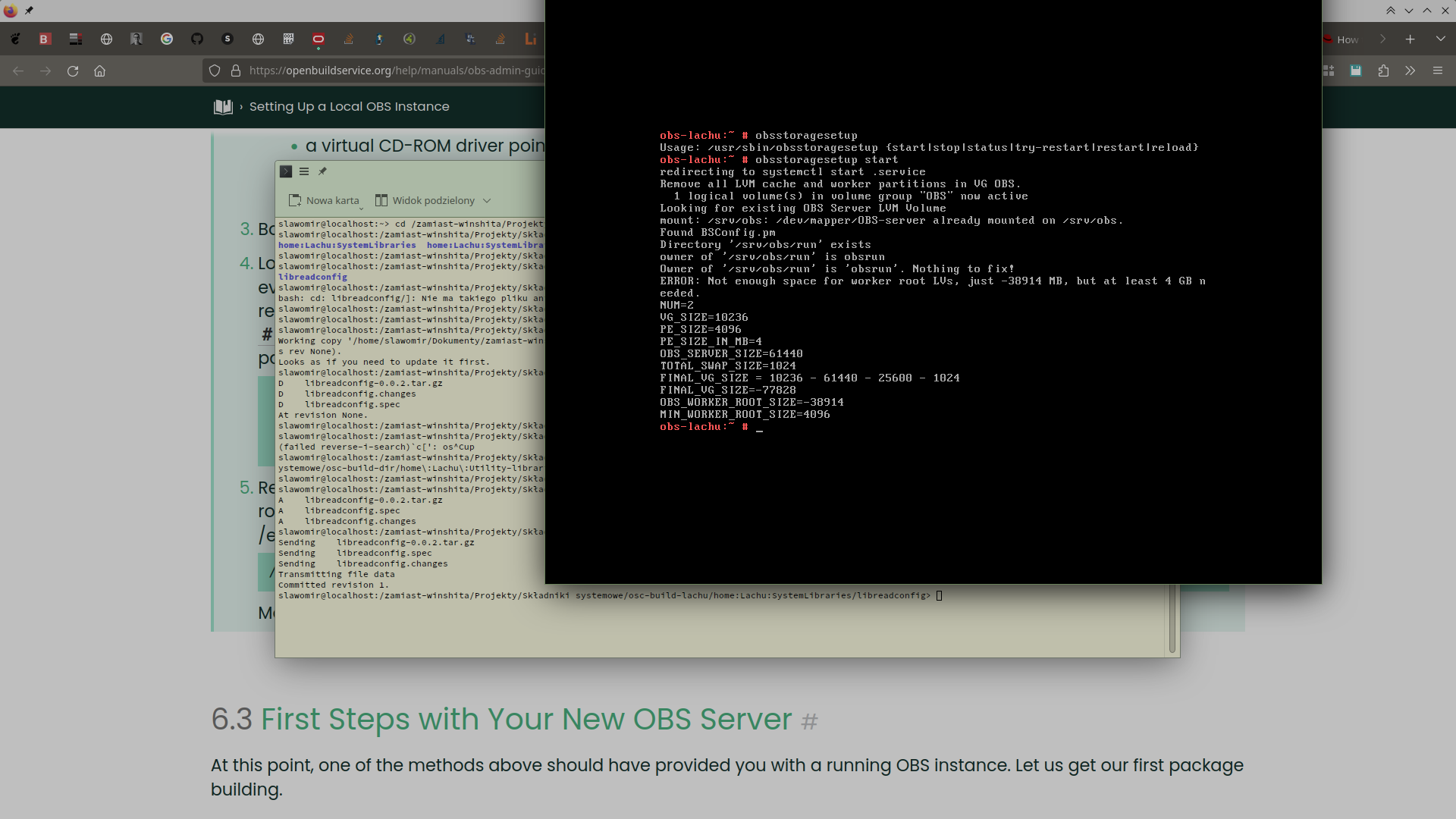 So, no space. It is odd. I created drive with 70 GiB size and mount (add to VM) as second storage. I also configured LLVM as described: Setting Up a Local OBS Instance | Administrator Guide .