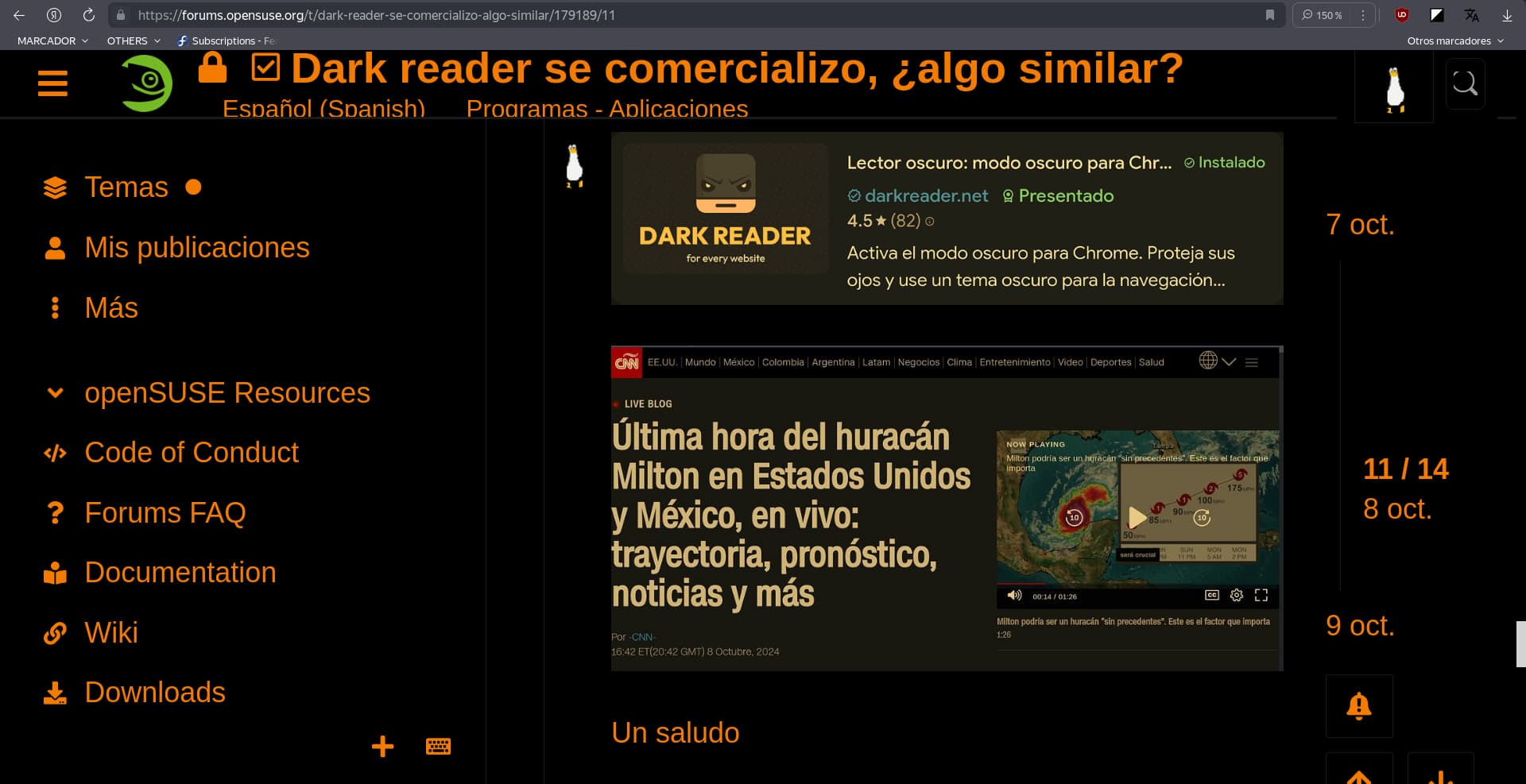 Este hilo es mas bien continuación del que aparece en la captura abajo sobre ‘Dark Reader’, allí dije que había encontrado otra app, ahora he encontrado otra mucho mejor, igual Dark Reader, solo hay que ir a las opciones y configurarla al gusto o necesidad de cada quien …