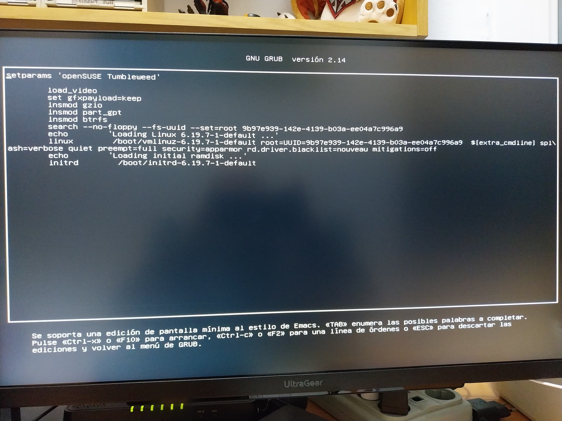 Lo enciendo y me sale esto (en la primera línea pone openSUSE Tumbleweed):