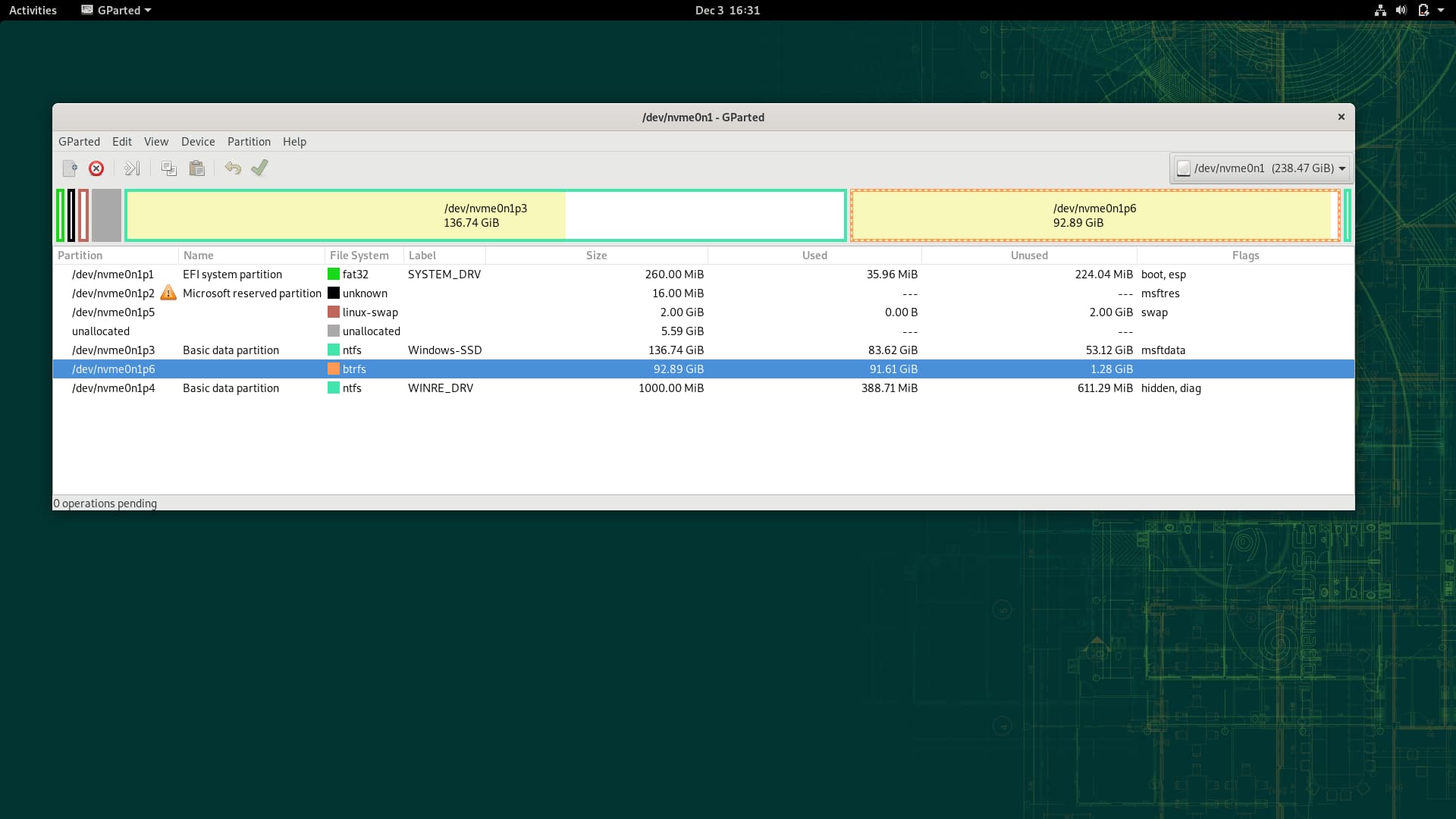 mount /dev/nvme01p6 /mnt (moest even puzzelen met de nvme01p6)