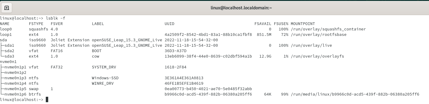 Heb met een live usb suse 15.3 het systeem opgestart.