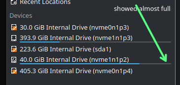 I panicked when I saw / only had about 1-2 GB available! (separate / and /home).