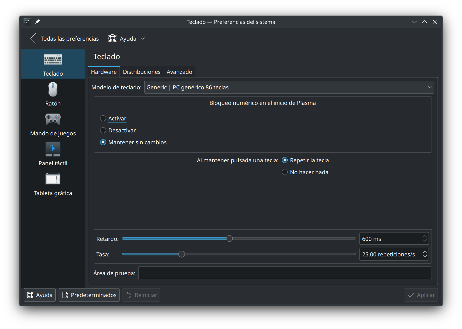 PD: Veo que Plasma me ha puesto y/o detectado el teclado de 86 teclas cuando el mio es uno de Acer genérico de ciento y pico teclas. No lo voy a cambiar porque no he tenido ningún problema.