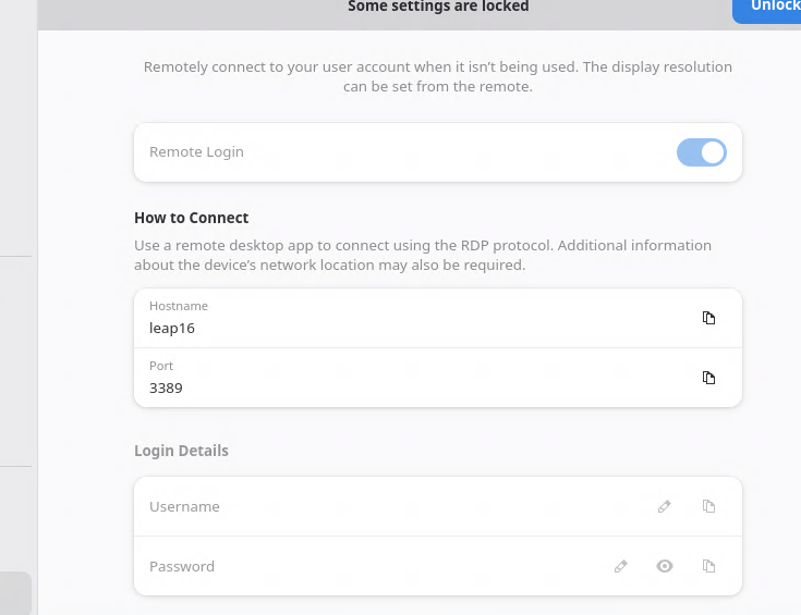As mentioned above, I have issues setting up remote unattended access for Leap 16.0 (with the KDE/Plasma Desktop). I have recently transitioned from Leap 15.6 with setting up a fresh installlation of Leap 16.0.