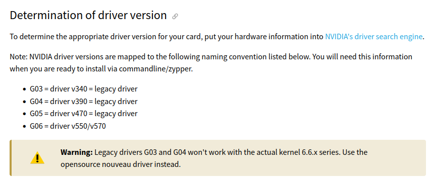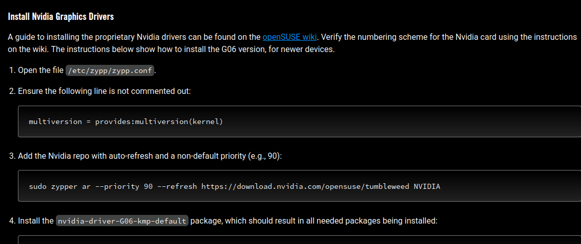 1 | NVIDIA:repo-non-free | repo-non-free | Yes | ( p) Yes | Yes | - | 99 | N/A | https://download.nvidia.com/opensuse/tumbleweed