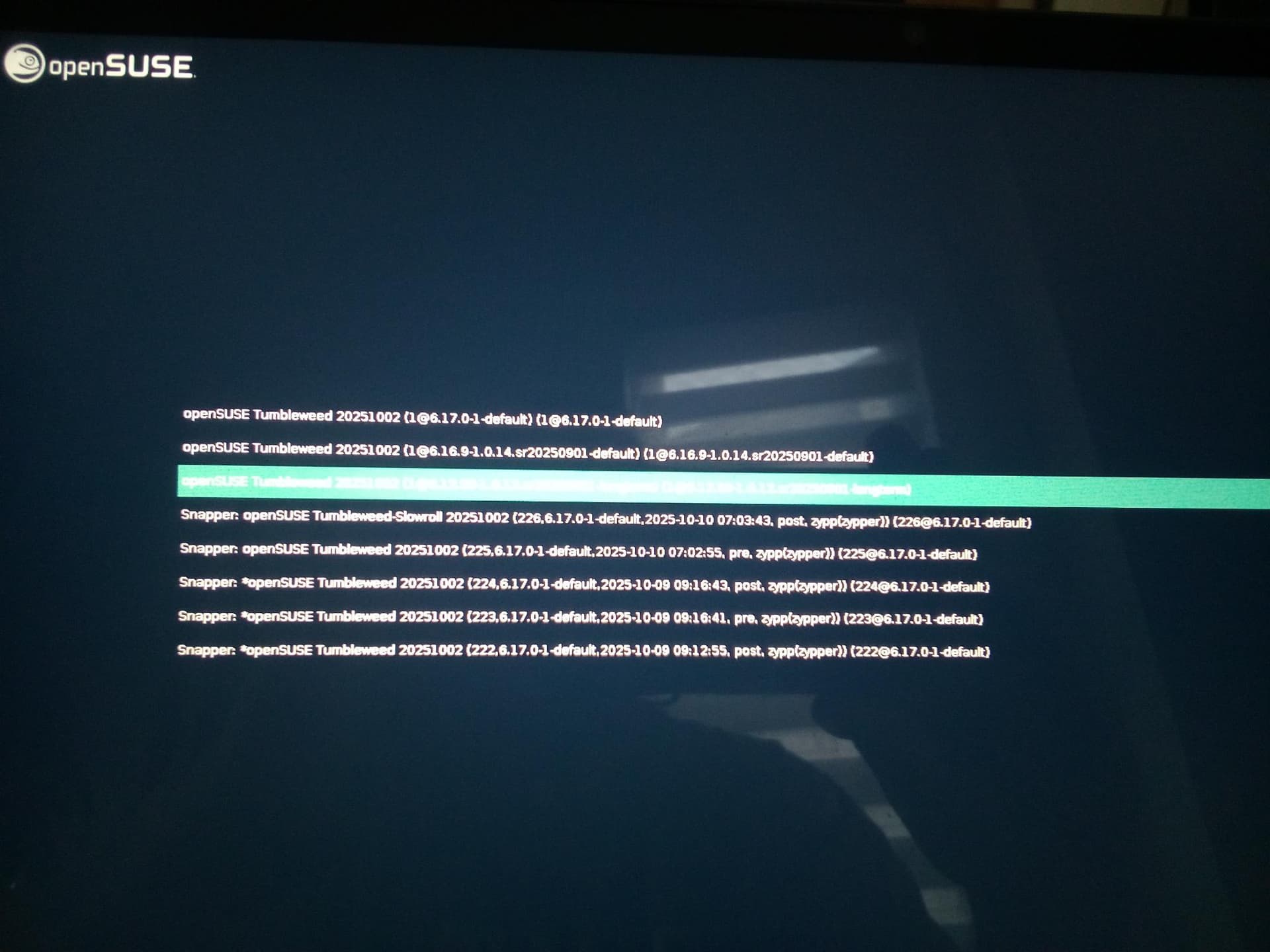 Upon a reboot, GRUB now correctly references opejnSUSE Tumbleweed-Slowroll.