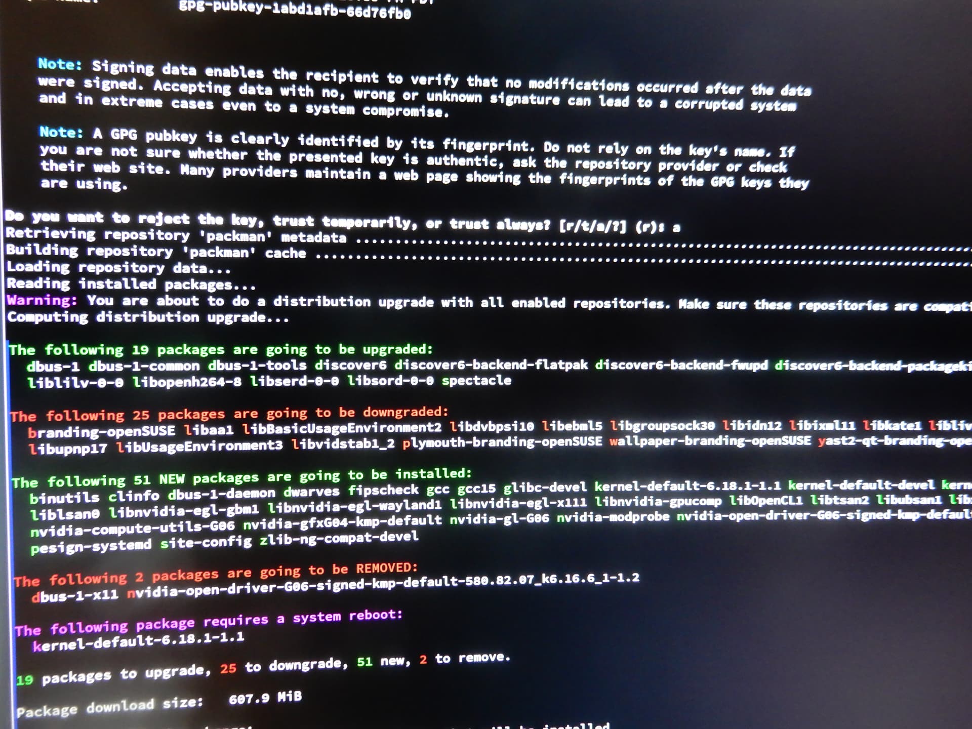 zypper dup warnings: