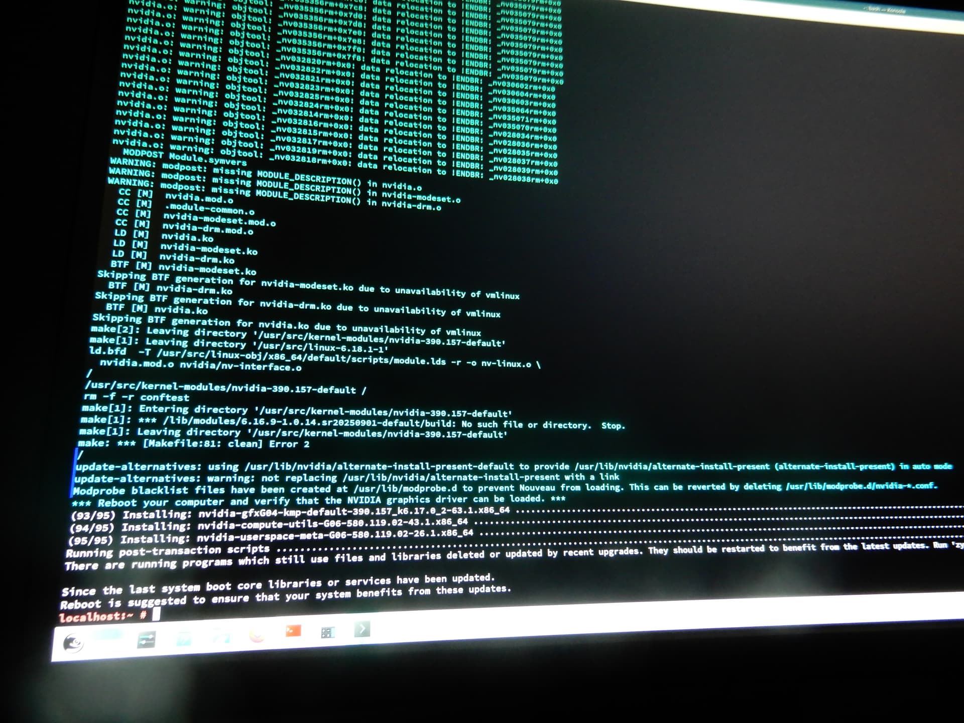 during the update started seeing errors, verbosed to the screen. did a reboot and now doesnt load gui, hangs. I did a another reboot with nomodeset, because my graphics are in nVidia, but it now get to the spinning circle, then hangsfreezes, monitor loses video signal, keyboard non-responsive. Took screen pics since I don’t know how to get the logs posted.