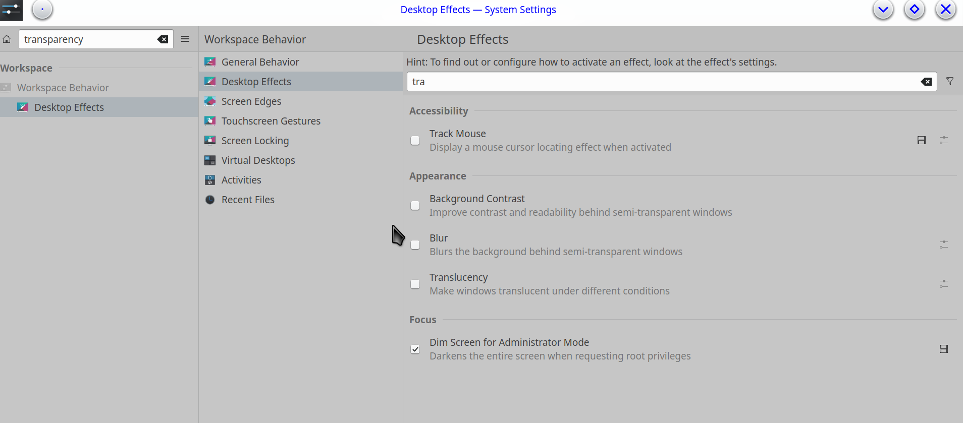 looking for semitransparency the only thing I foundis in systemsettings-desktop effects