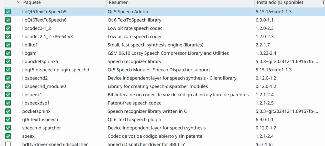. ¿Tal vez Tumbleweed no viene con todos los paquetes necesarios y me falta algo por instalar o configurar? En mi móvil Android “desgoogleado”, por ejemplo tuve que instalar la apli SherpaTTS, un sintetizador de voz. ¿Puede ser que en Tumbleweed haya que hacer lo mismo?