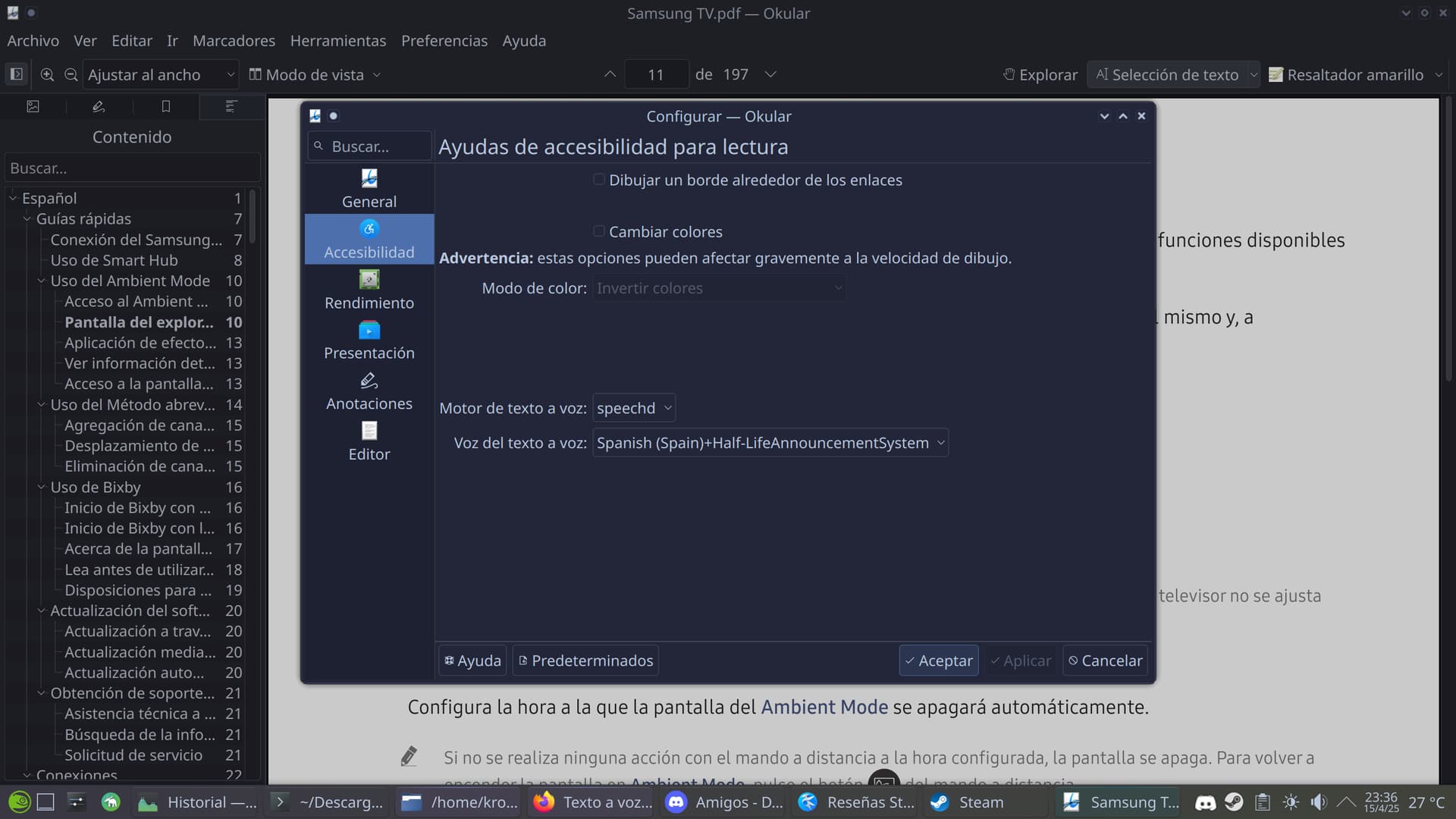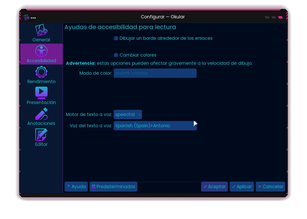 ¿Alguien sabe qué está diciendo?, o mejor, ¿alguien sabe qué hay que hacer para que Okular, Kmail, Calibre y otros lean en voz alta y con una voz comprensible tanto por el idioma como por la calidad del sonido?