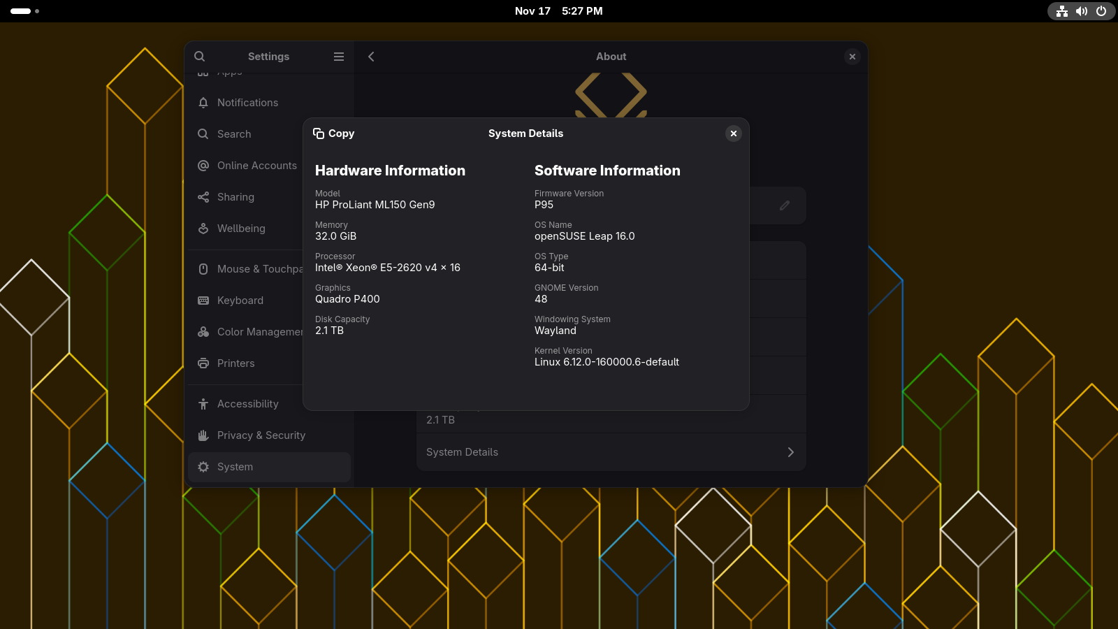 I don’t use Plasma, not my thing, too many bugs (based on Forum posts)? GNOME has been rock stable for me on Tumbleweed and Leap and on Wayland, but most of my Leap install are just multi-user… I posted a few screenshots of some test systems, still refining end use as just bringing online a Proliant ML150 Gen 9 to see what it’s like (it’s currently running GNOME for giggles on Nvidia even…)