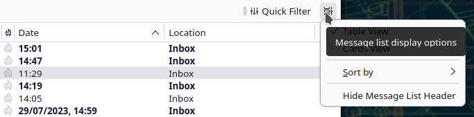 Similarly the order of messages is now being shown in threaded groups with date order set by the threading.
