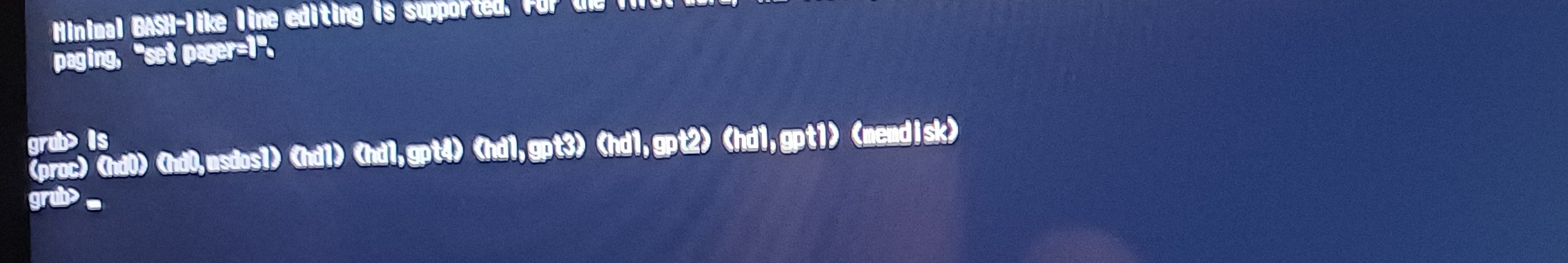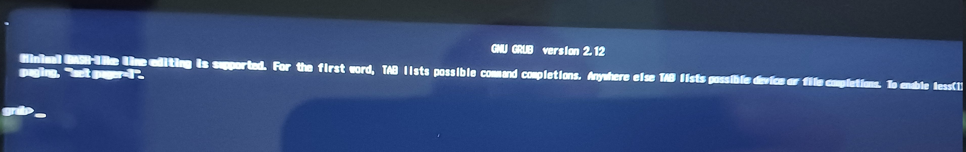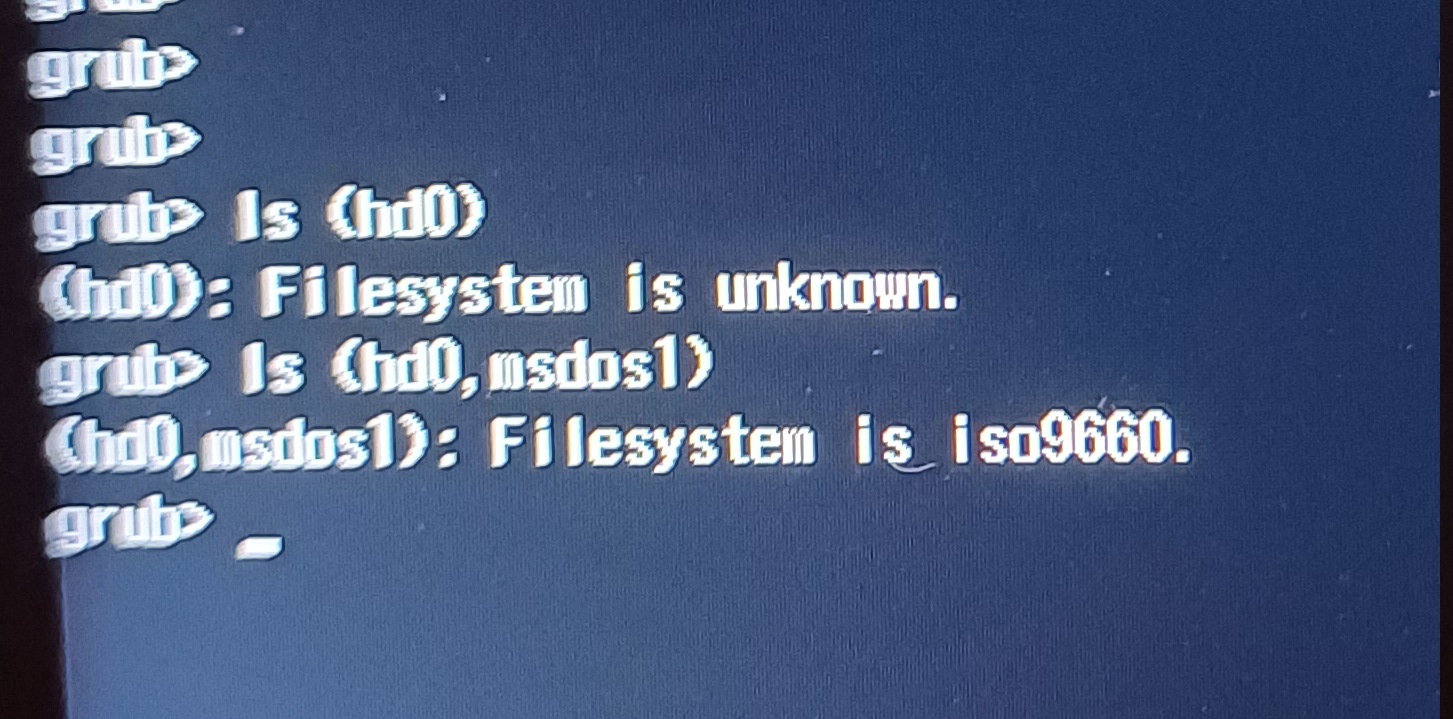 after disabling secure boot the the Tumbleweed install didn’t produce the security message, but stopped with the grub prompt (see second picture above)