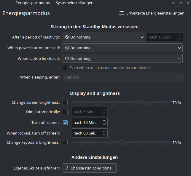 6.0.3 hat leider keine Verbesserung gebracht. Meine Energiesparmodus-Konfiguration sieht nach wie vor so aus:
