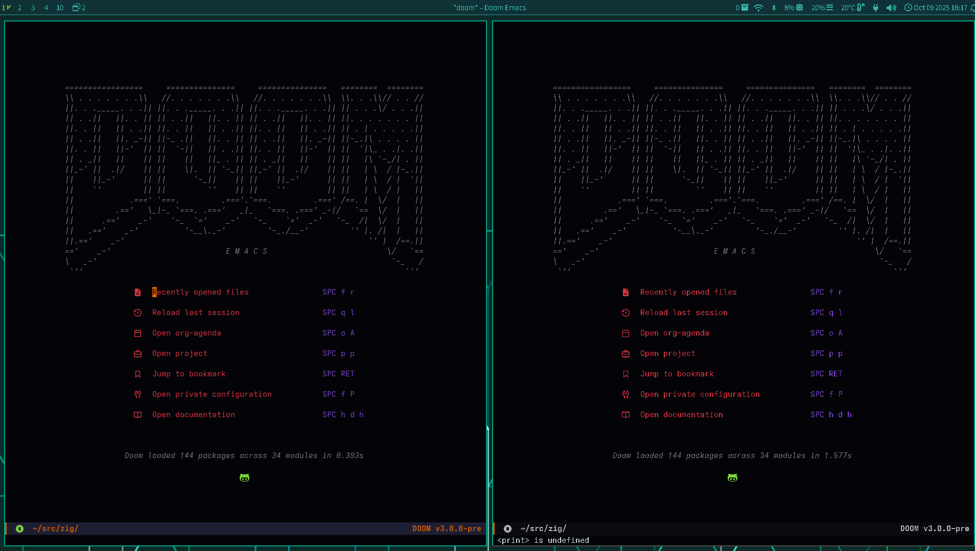 Left is /usr/bin/emacs-x11, right is /usr/bin/emacs-wayland