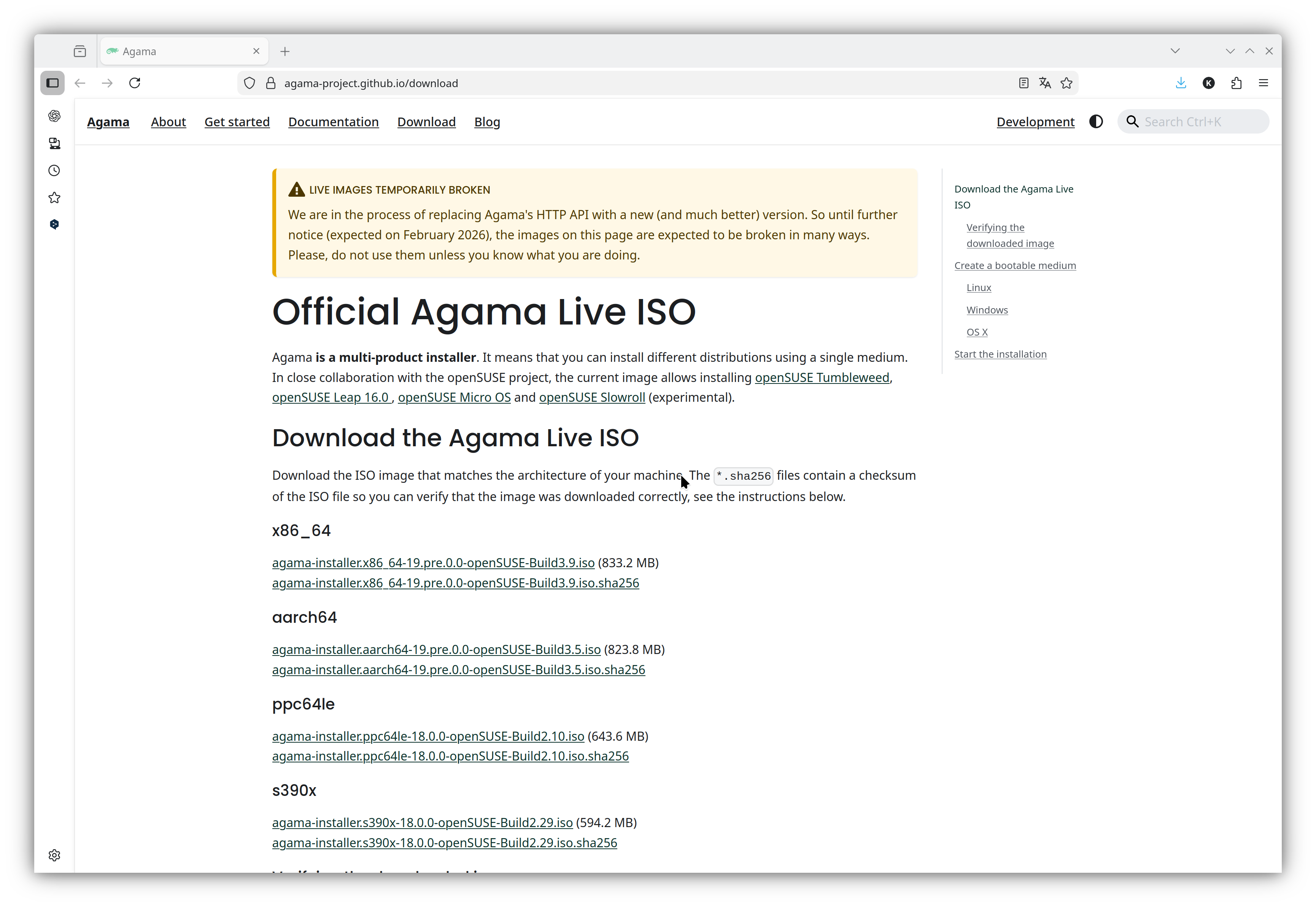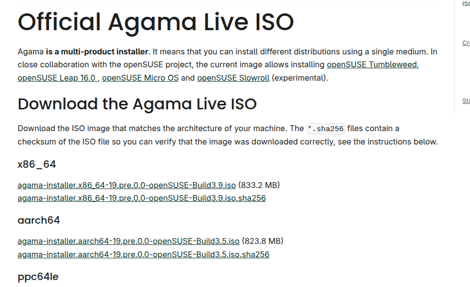 wget https://download.opensuse.org/repositories/systemsmanagement:/Agama:/Devel/images/iso/agama-installer.x86_64-19.pre.0.0-openSUSE-Build3.6.iso.sha256